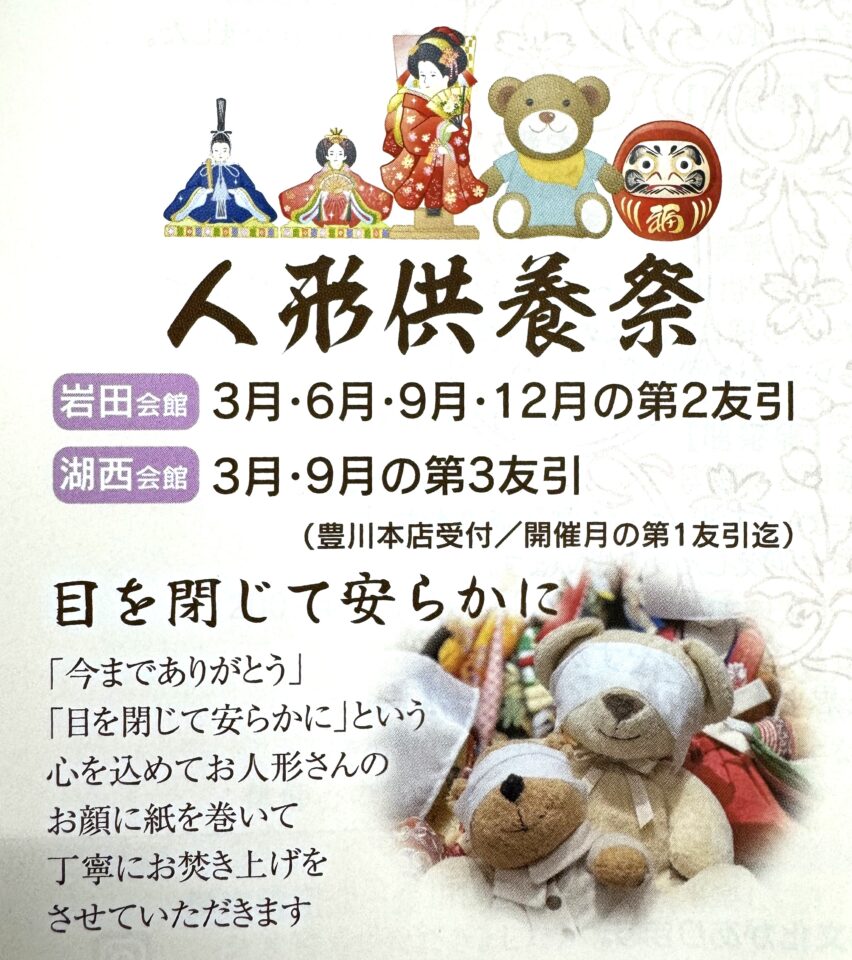 岩田エコー会館(豊橋市中岩田)にて、『人形供養祭』を執り行います。